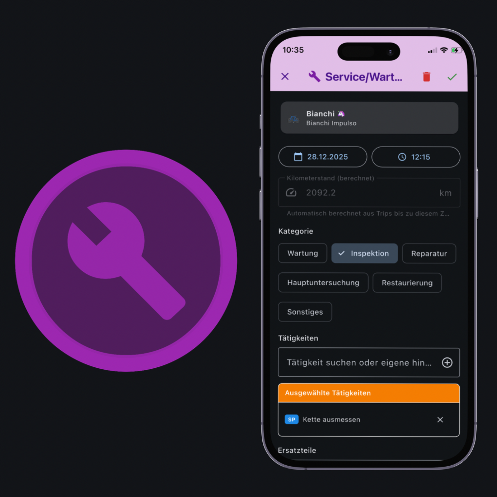 RideBase sorgt dafür, dass dein Fahrzeug immer in Bestform bleibt. Erstelle individuelle Servicepläne oder nutze intelligente, fahrzeugspezifische Vorschläge. Dank automatischer Erinnerungen verpasst du keinen Service mehr. Alle Wartungen, Reparaturen und Services findest du übersichtlich in der Timeline – inklusive Rechnungen, Bildern und Details. So hast du jederzeit die volle Kontrolle über die Historie deiner Fahrzeuge.